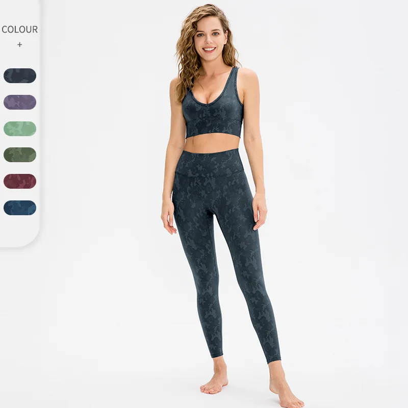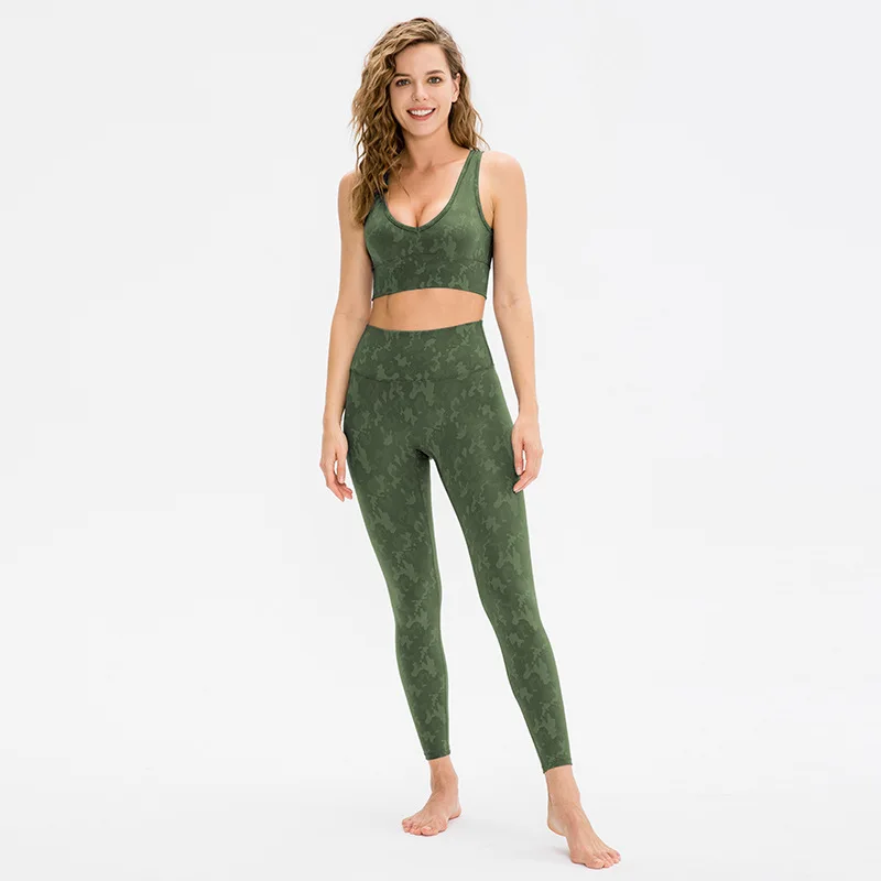 High Waist Camouflage Fitness Active Wear Workout Women Yoga Set