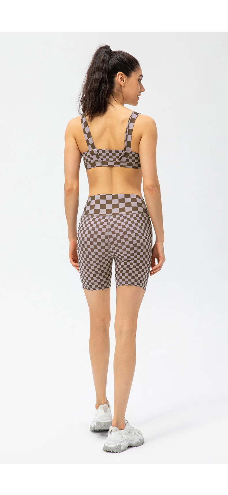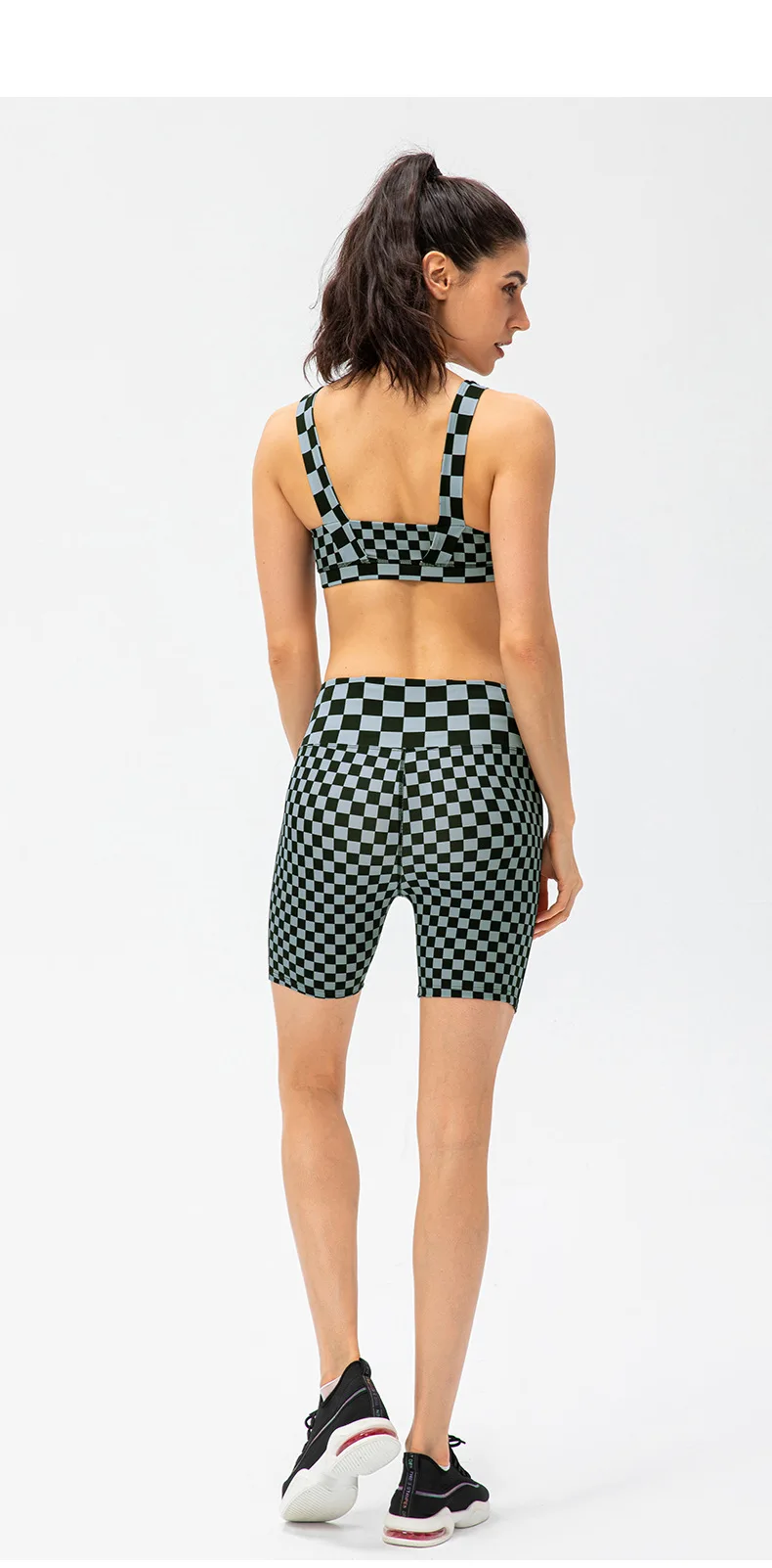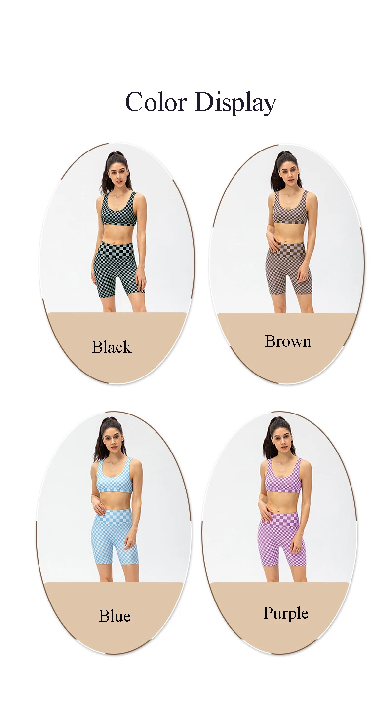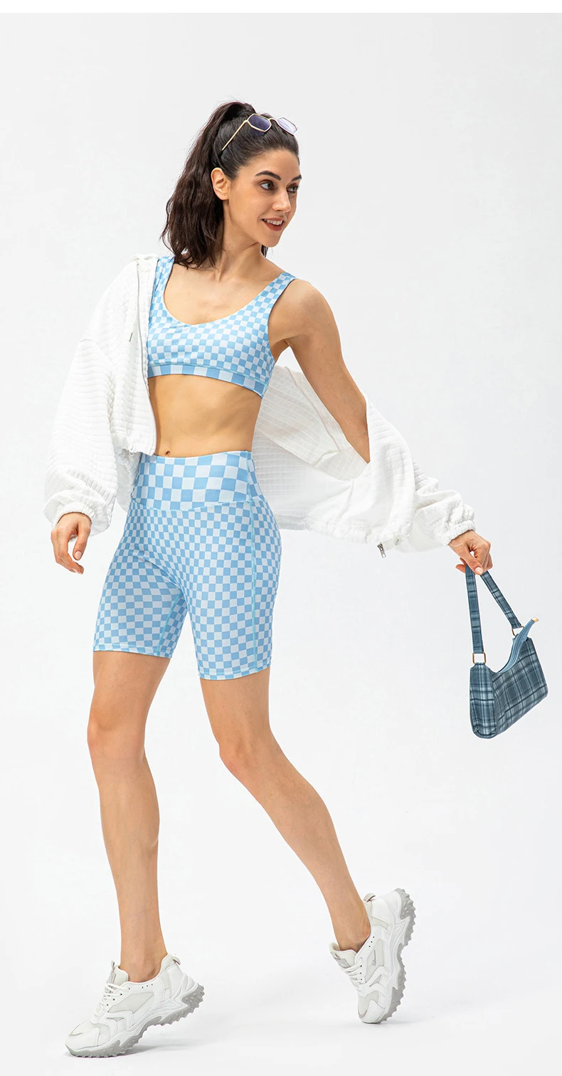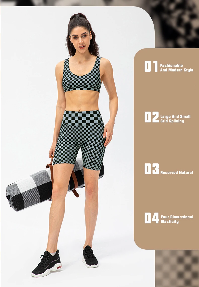 Women Short Checkerboard 2 Piece Workout Running Yoga Set