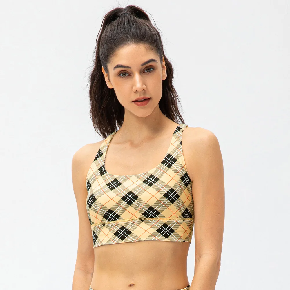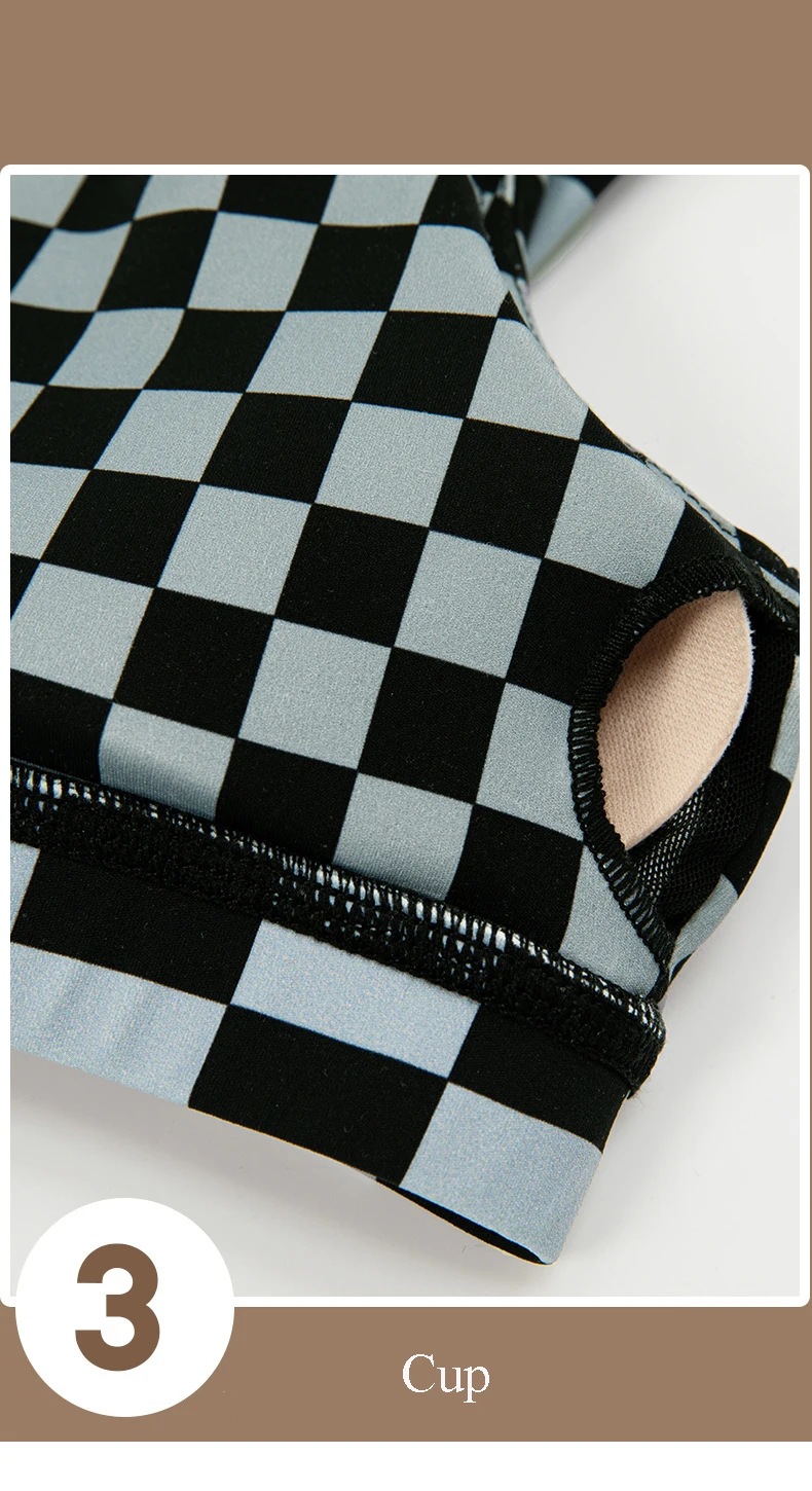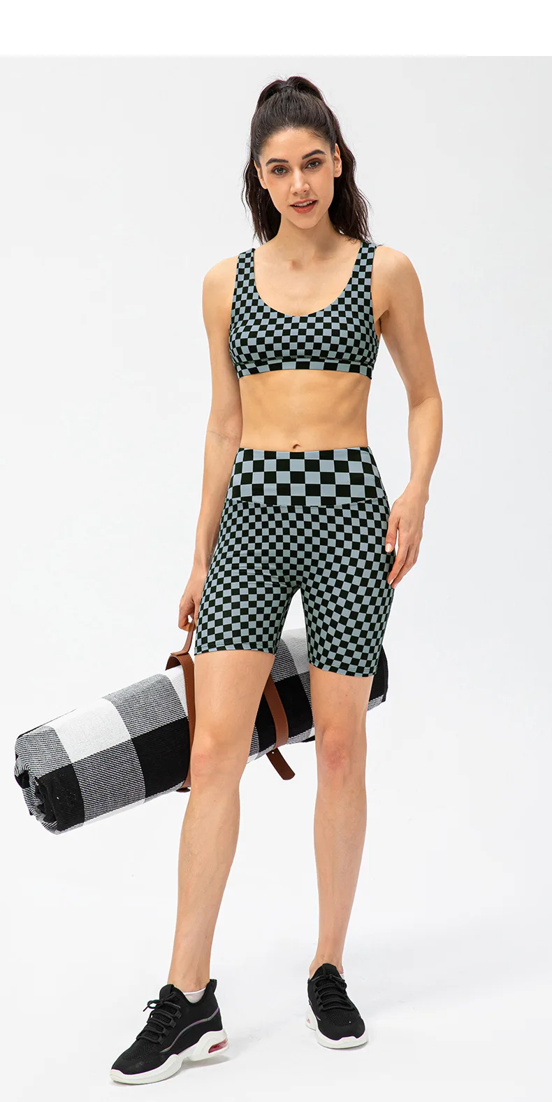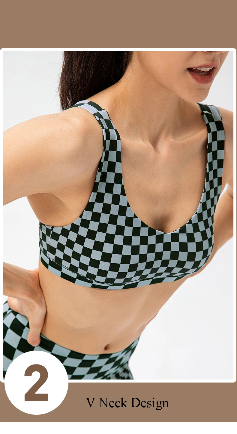 Women Short Checkerboard 2 Piece Workout Running Yoga Set