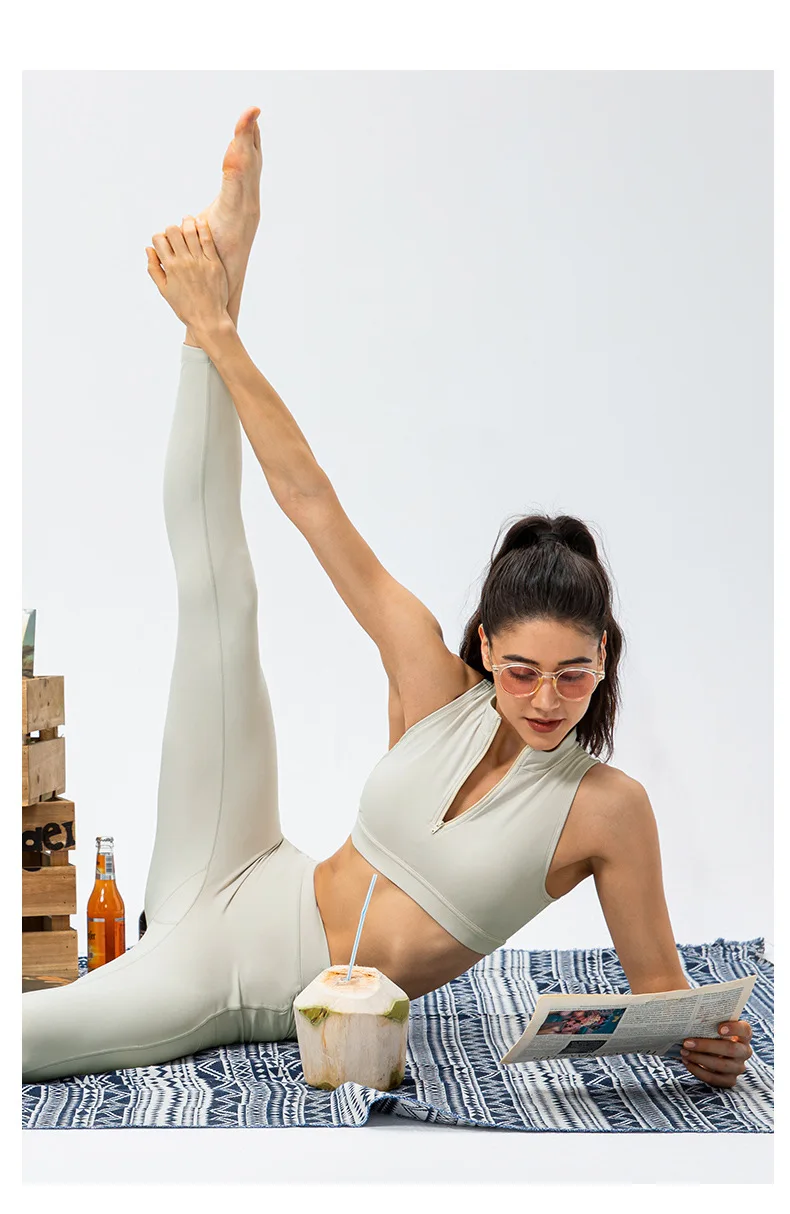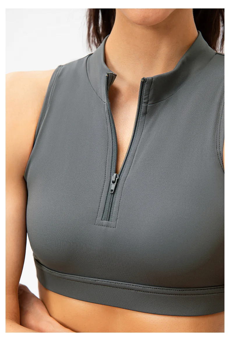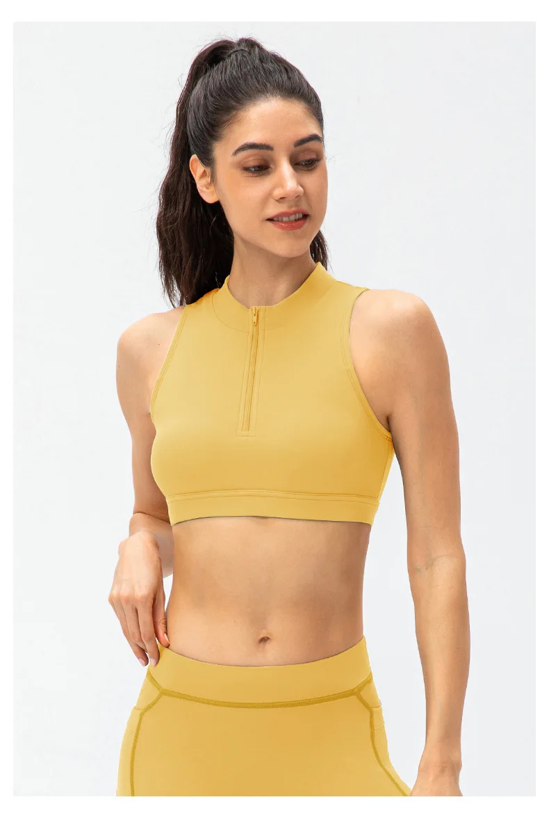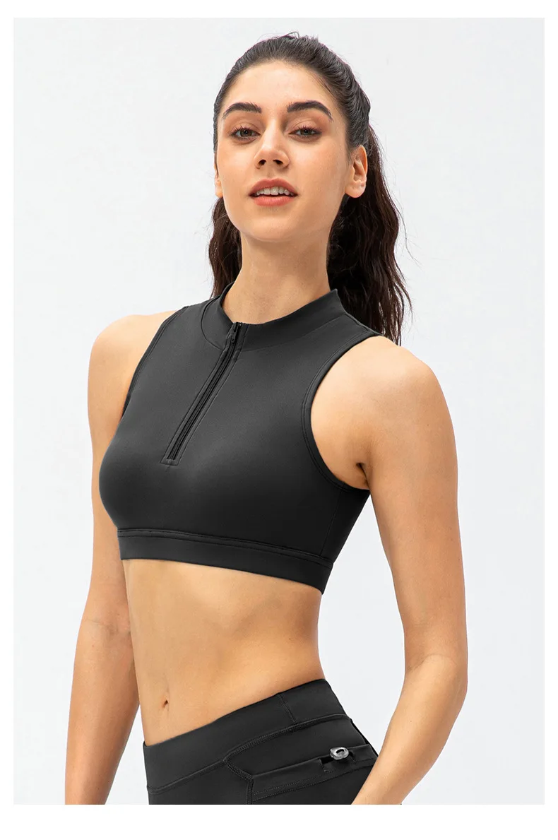 Zip Front Longline Sports Bras Fitness Yoga Workout Suit
