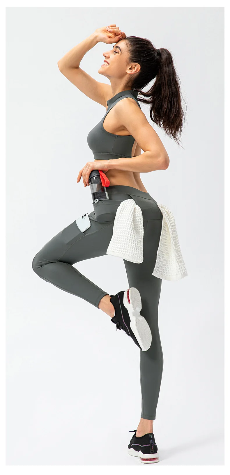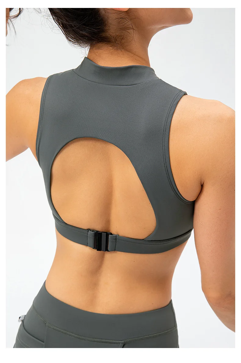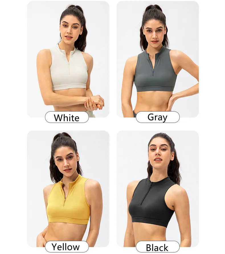 Zip Front Longline Sports Bras Fitness Yoga Workout Suit